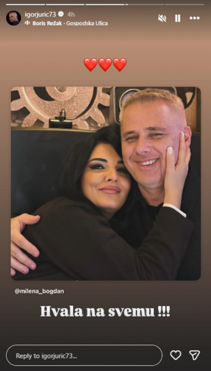 Игор Јурић је њену објаву поделио на свом Инстаграм сторију и јавно јој се захвалио на свему.