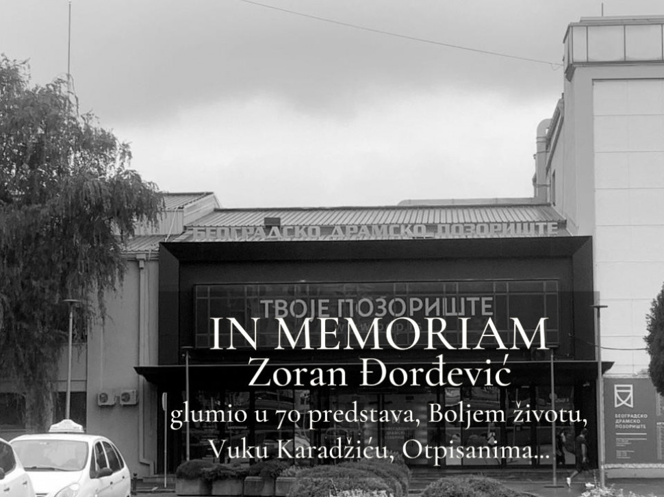 Глумац Зоран Ђорђевић преминуо је у 79. години у Београду. Зоран је био члан ансамбла Београдског драмског позоришта од 1971, активни глумац и током пензионерских дана.