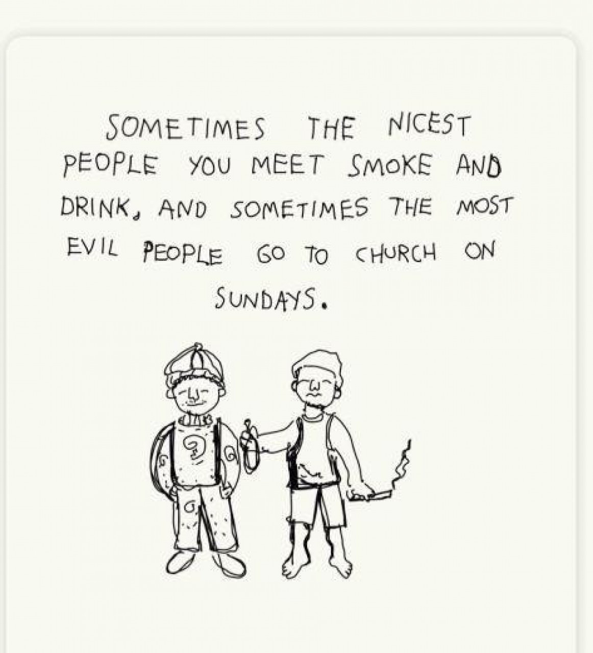 - Некада су најфинији људи које сретнеш они који пуше и пију, а некада су најзлобнији они људи који иду у цркву недељом.