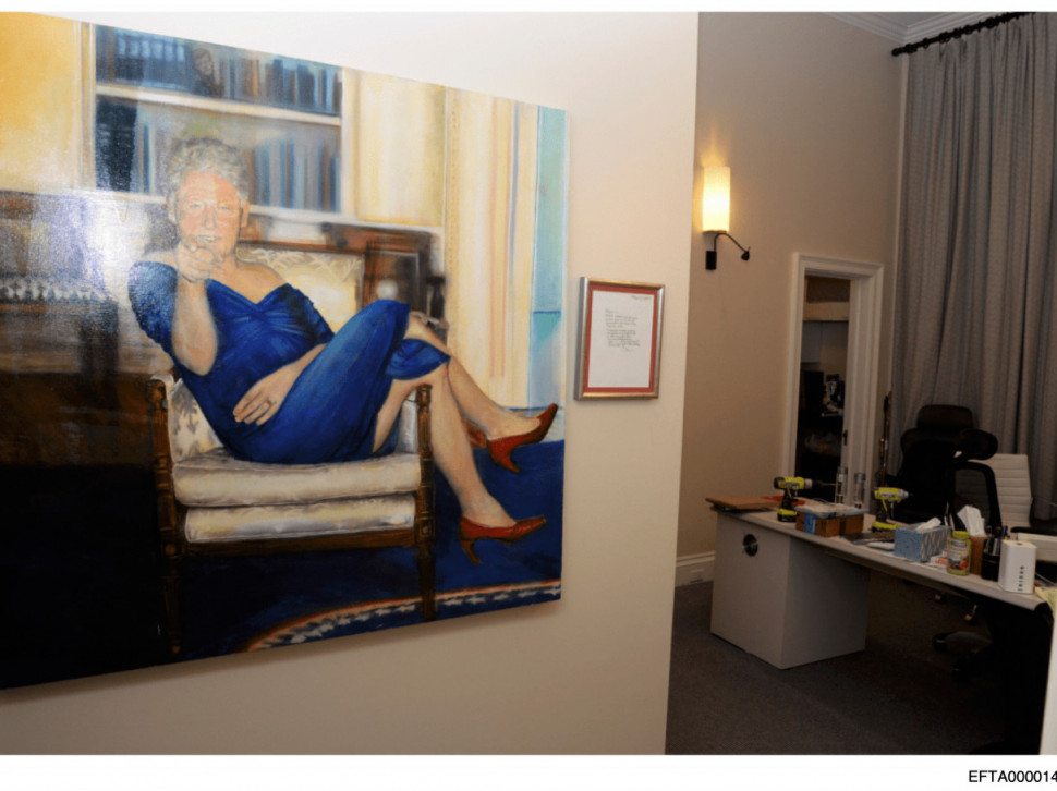 Није познато када га је Епштајн купио ни због чега, али занимљво је да слика крије неколико детаља који јасно алудирају на највећи скандал који је Клинтон преживео током мандата - секс афера са Моником Левински.