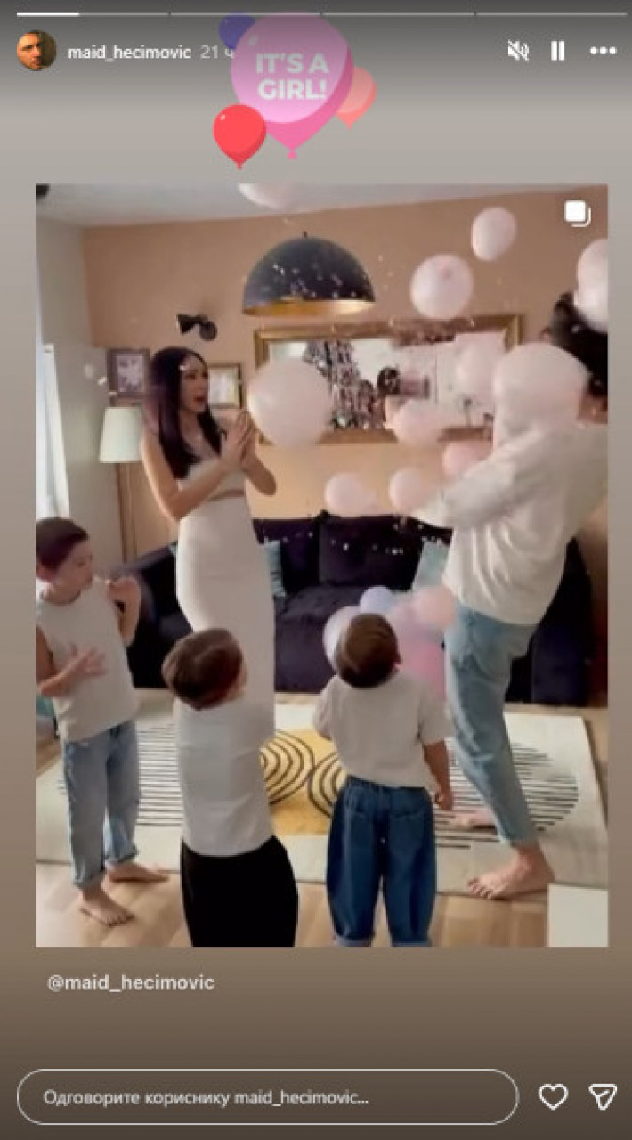 Маид је на Инстаграму поделио снимак откривања пола и саопштио да ће њихова породица ускоро бити богатија за још једног члана.