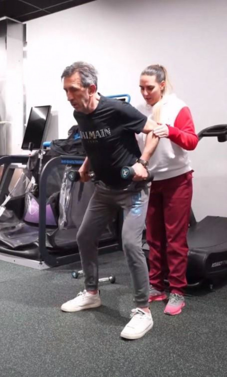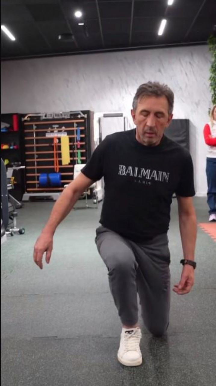 Водитељ је сада поделио видео након једног од тренинга у теретани. Јакшић вежба уз ааистенцију у једној сали специјализованој за такве пацијенте. Њега су уснимили како вежба са теговима, искорак и остале вежбе развотеже.