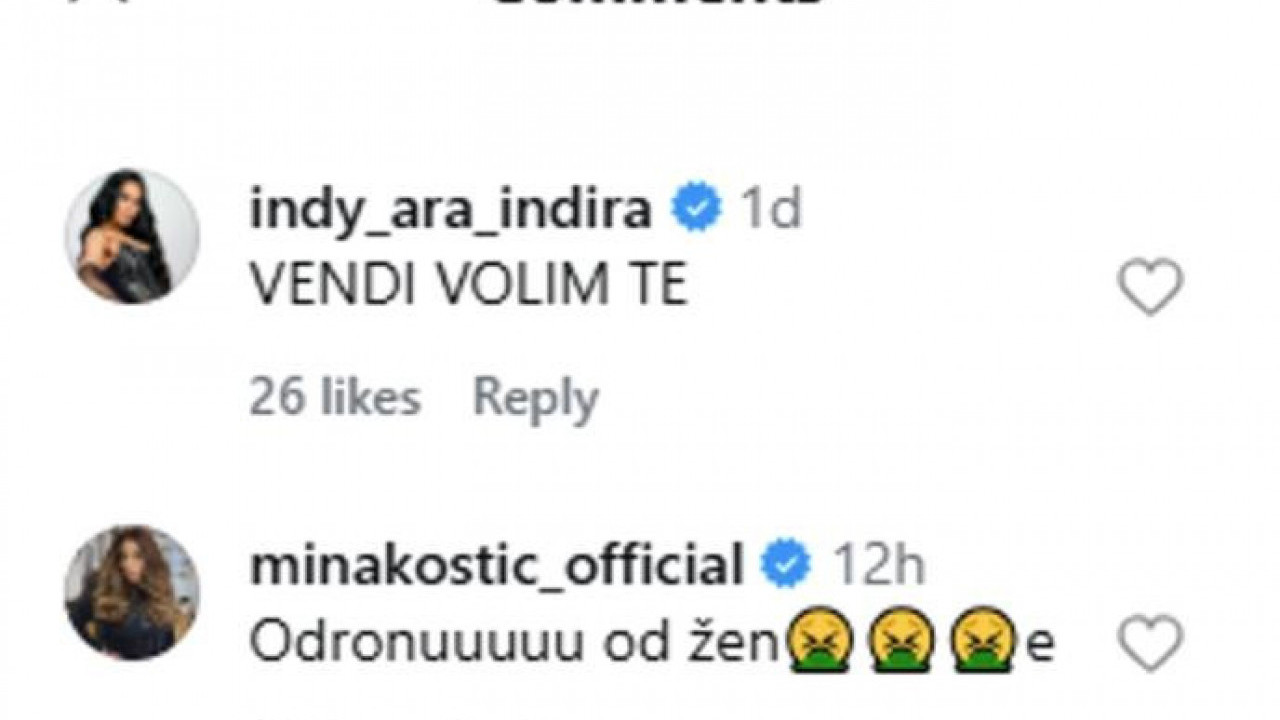 Венди је сада јавно објавила снимак њихове веридбе из "Амиџи шоуа", а певачица Инди Арадиновић, је у коментарима кратко поручила: "Венди, волим те".