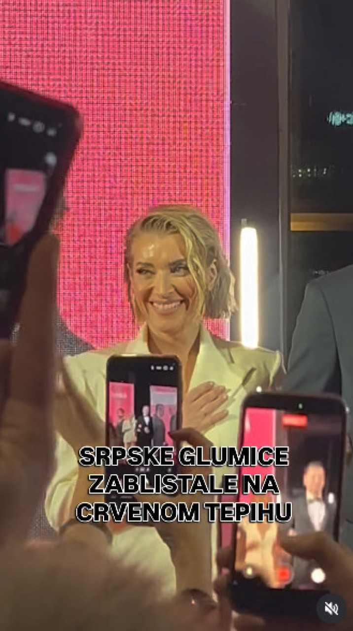 Анђека Стевић Жугић је блистала на црвеном тепиху у белом комплету који одише елеганцијом, косу је пустила и благо зализала, шминка је била дискретна, а опредила се и за једноставне минђуше које су висиле. Осмех није скидала са лица.