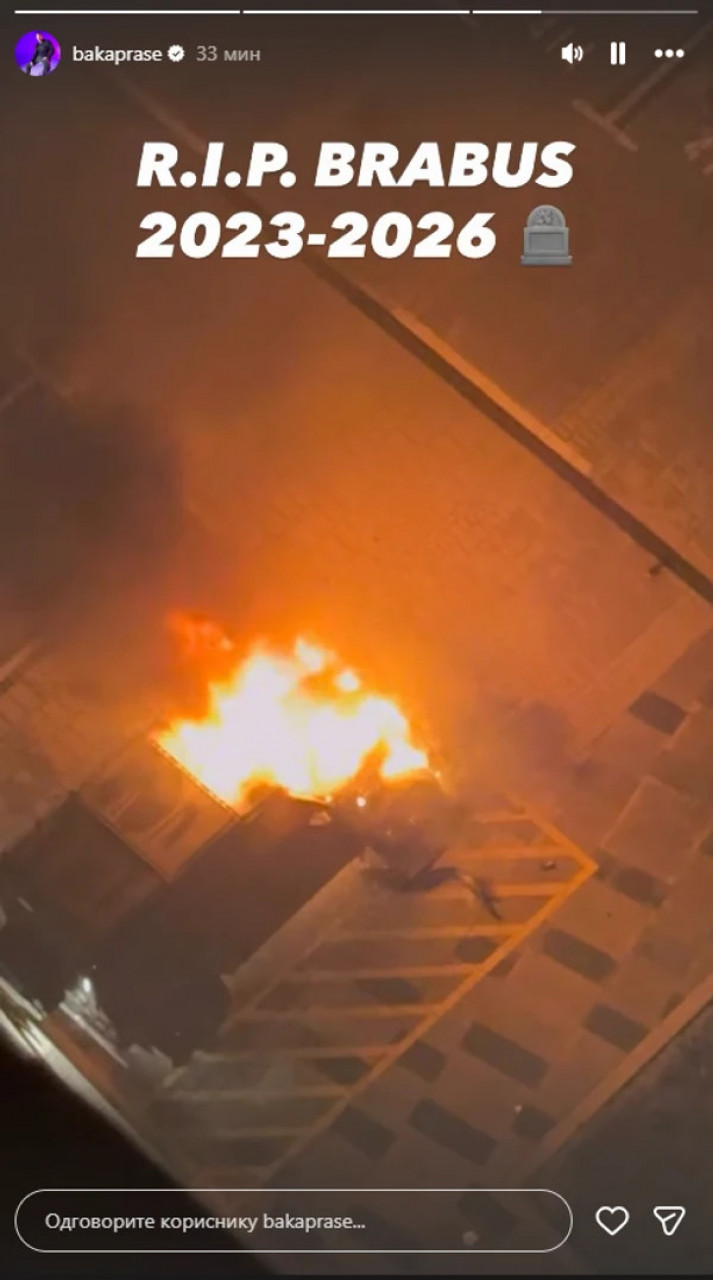 Бака Прасе се огласио на Инстаграму поделио снимак са терасе, док је снимао свој запаљени аутомобил.