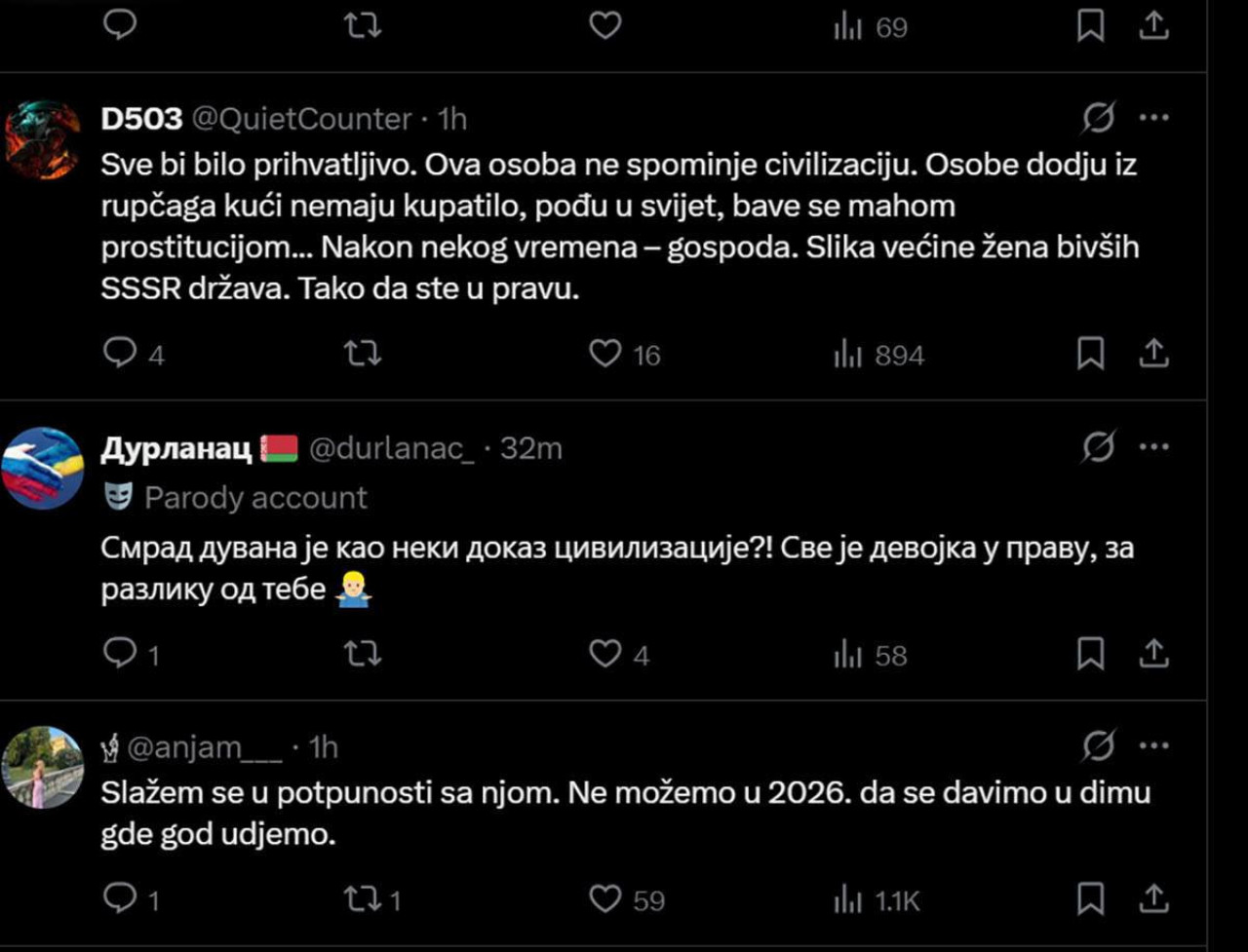 Снимак се брзо проширио и на мрежи "X", а нису изостали ни коментари Срба. Док се многи слажу са њом, има и оних који пишу да су "сигурни да је боље у селу на граници између Азербејџана и Грузије одакле је и дошла". Ово су само неки од коментара: