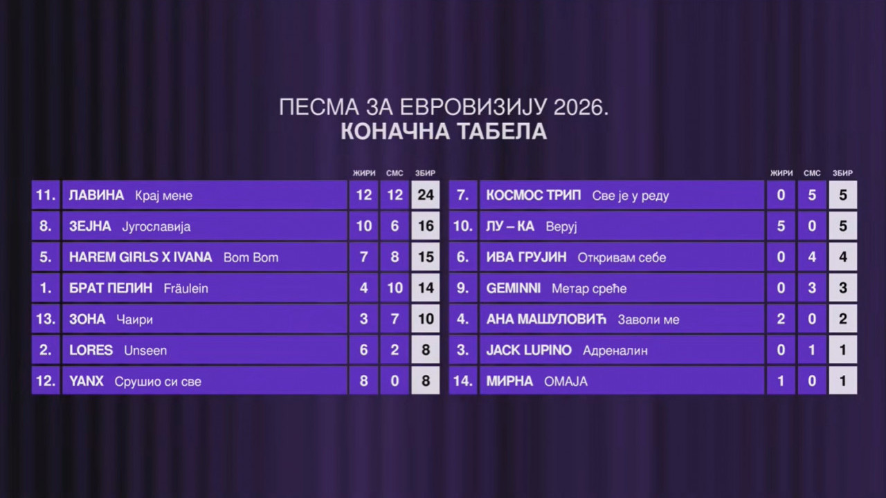 У завршници "Песме за Евровизију 2026", наступило је 14 финалиста који су се пласирали у првој и другој полуфиналној вечери фестивала.