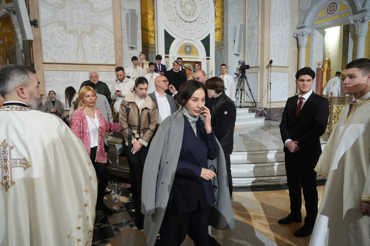 Литургији у Храму Светог Саве присуствовала је и Вики Миљковић која је дошла у пратњи мужа Драгана Ташковића Ташкета.