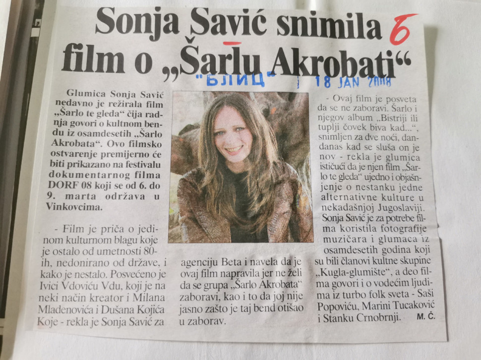 - Филм је прича о једном културном благу које је остало од уметности 80-их, недонирано од државе, и како је настало. Посвећено је Ивици Вдовићу Вду, који је на неки начин креатор и Милана Младеновића и Душана Којића Које. (Архив Борбе, Блиц, 18. 1. 2008.)