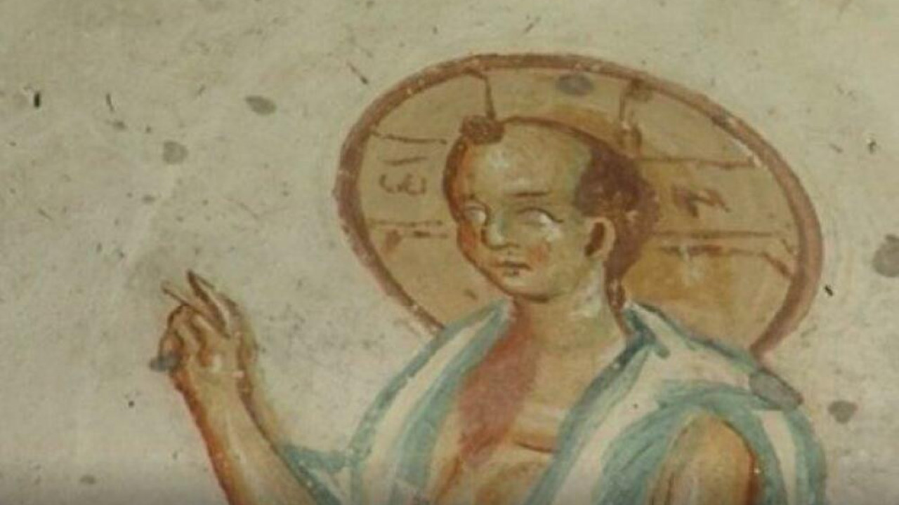 Фреску историчари уметности зову Христос Младенац, а Исус је на њој приказан као млад и ћелав. Фреска у народу позната као Ћелави Исус.