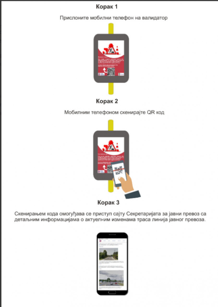 За брз и једноставан приступ информацијама о свим актуелним изменама траса линија на валидаторима ће бити доступан и QР код чијим скенирање путем мобилног телефона корисници приступају сајту Секретаријата за јавни превоз.