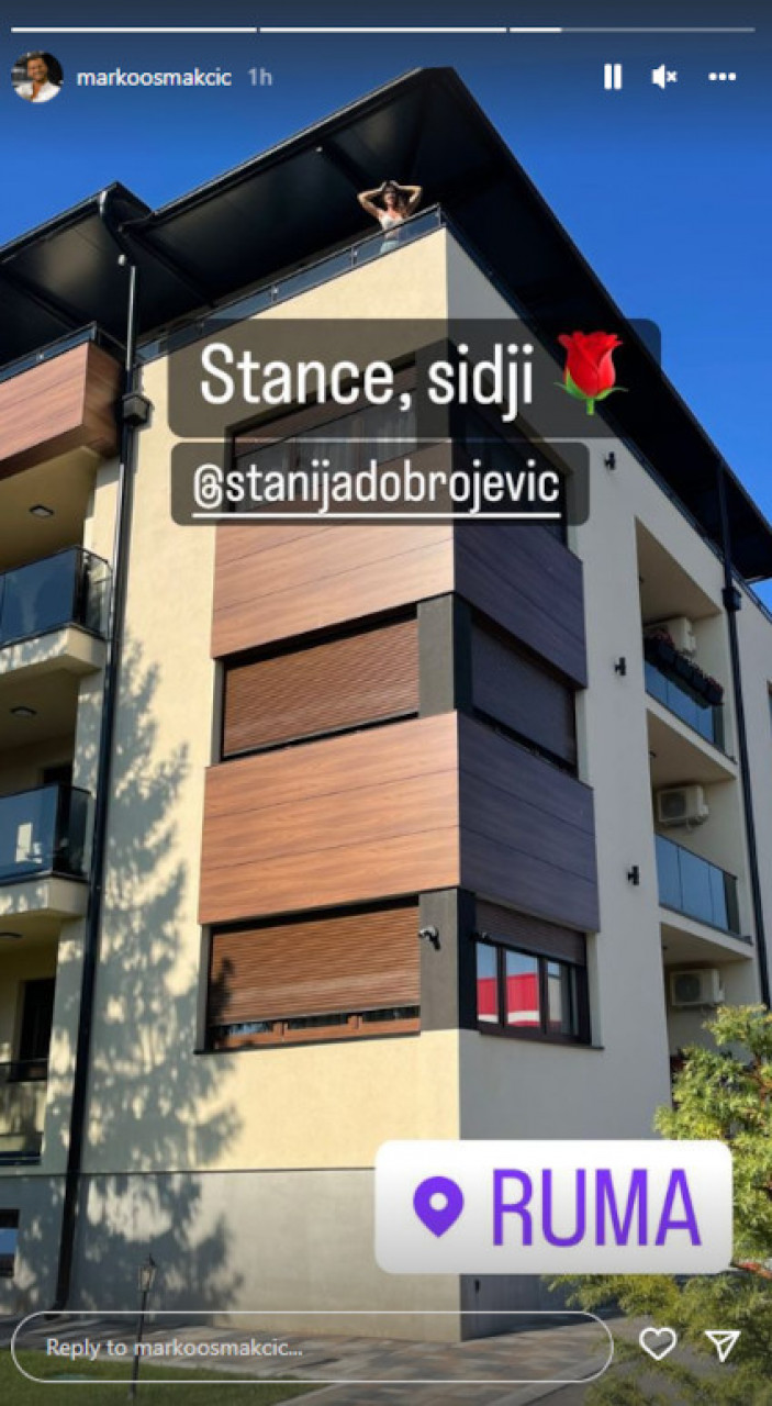 Марко Осмакчић је поделио фотографију, дошао је испред зграде у којој живи Добројевићева, те је фотографисао док га је гледала са своје терасе.