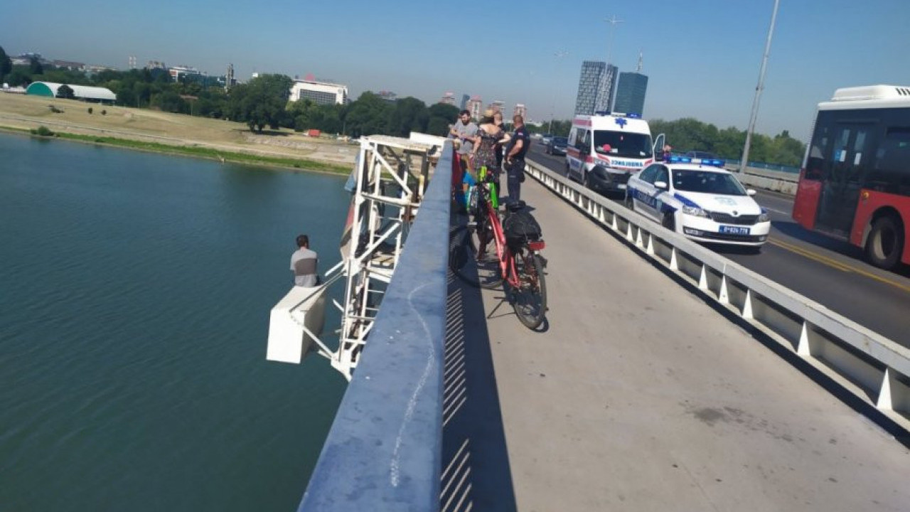 Наиме, мушкарац средњих гоидина попео се на металну конструкцију на самој средини моста и прети да ће да скочи.