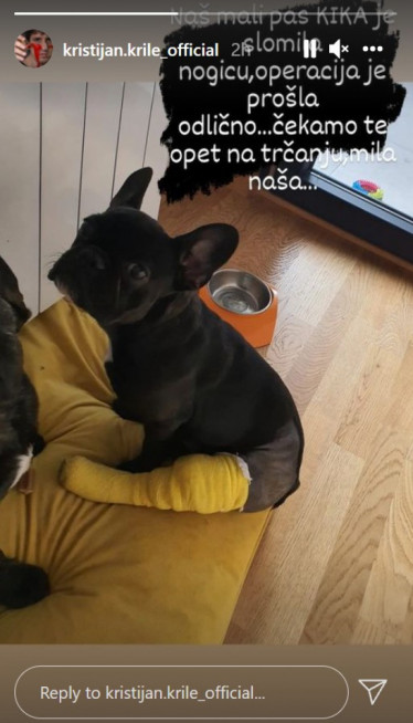 - Наш мали пас Кика је сломила ногицу, операција је прошла одлично... чекамо те опет на трчању, мила наша - стоји у објави на Инстаграму Кристијана.