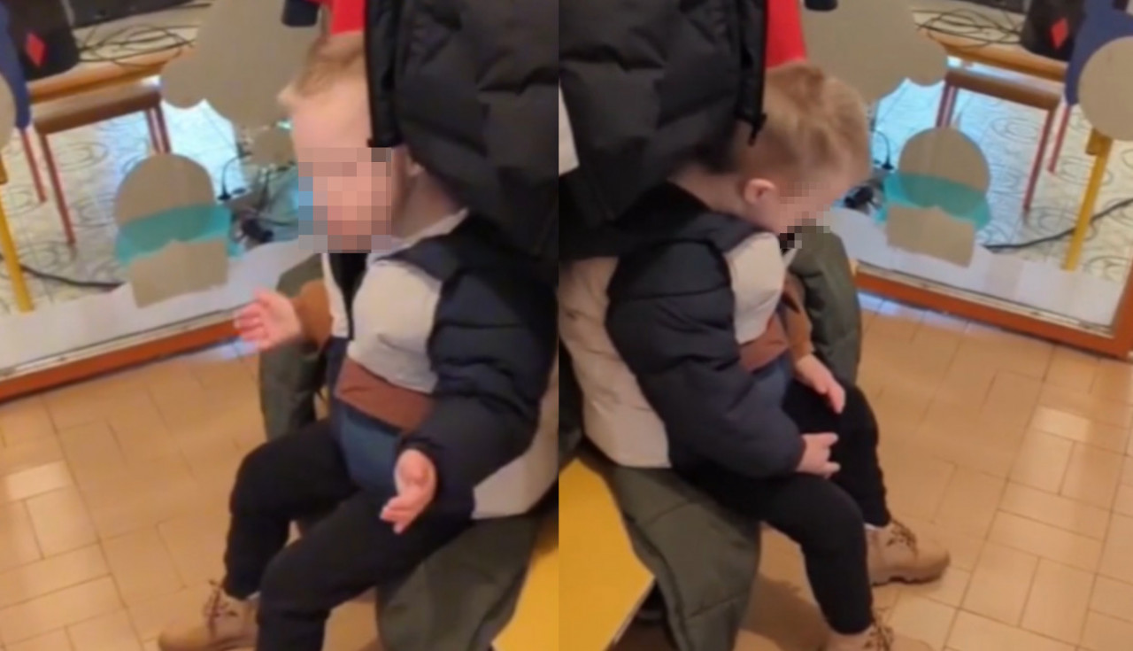 Уместо да је на бини са осталом децом, њему наводно није било допуштено да наступа те седи сам у холу вртића, док се у позадини чује како дечица певају популарну новогодишњу песмицу "Звончићи, звончићи звоне целу ноћ".