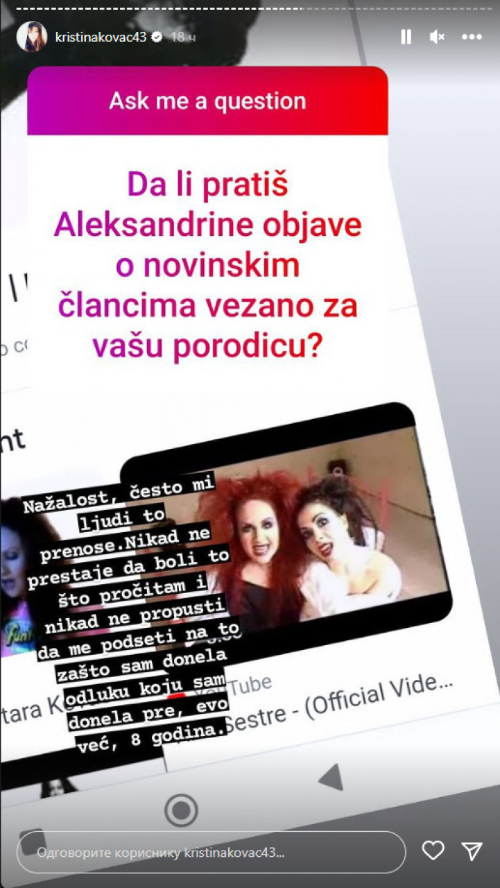 Кристина је открила како реагује када чита објаве о сестри у медијима: