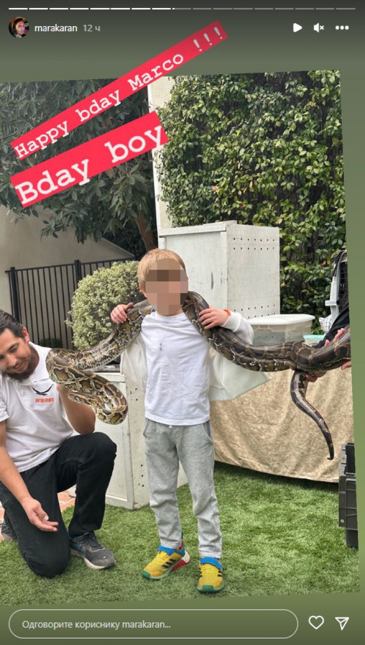 Глумица се веома ангажовала око декорације, балони су свуда били постављени, спремљена је огромна торта за сина, а није се могле не приметити фотографије наследника које је Марија објавила. Њен син на рођендану држао је огромну змију, а затим и орла.