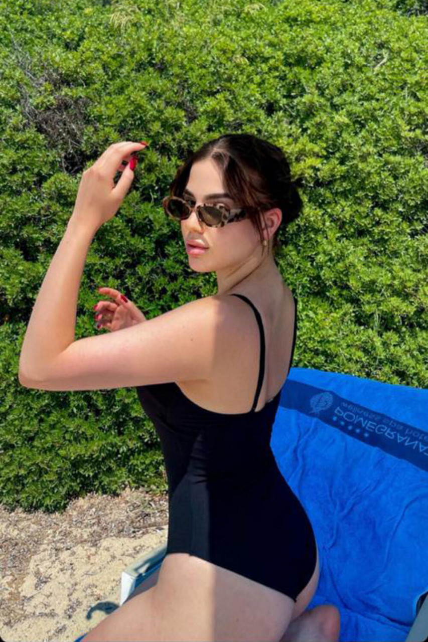 Уна је позира на лежаљци у изазовној пози, а на себи је имала једноделни купаћи костим у црној боји, који је истакао њене облине и позадину. Она је објавила цео сет фотогарфија и све је употпунила наочарима за сунце и подигнутом косу. Други купаћи је био на пруге, али је и он једноделни.
