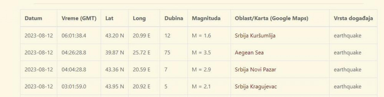 Poslednji zemljotres ovoga jutra registrovan je jutros u osam sati u Kuršumliji i bio je slabiji od prethodna dva koja su potresla tlo u Srbiji. Zabeležen je potres jačine 1,6 stepena po Rihteru.