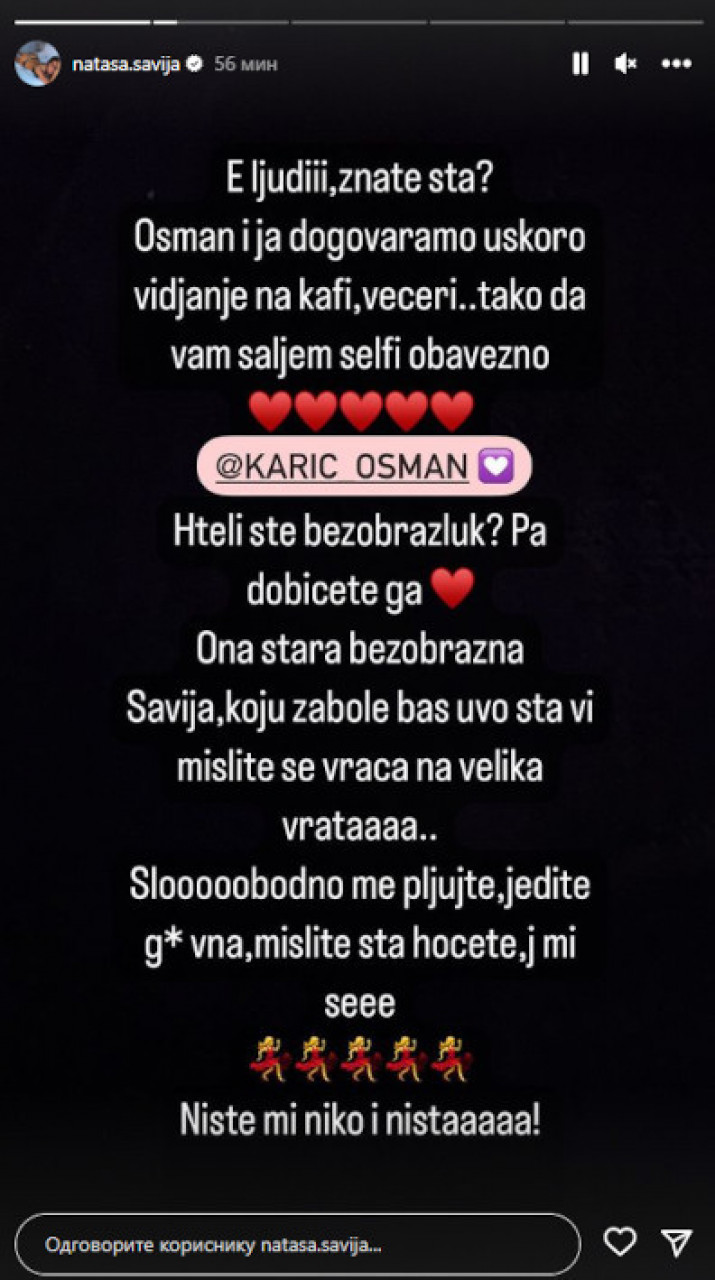 - Е људи, знате шта? Осман и ја договарамо ускоро виђање на кафи, вечери… тако да вам шаљем селфи обавезно - почиње Шавија па наставља: