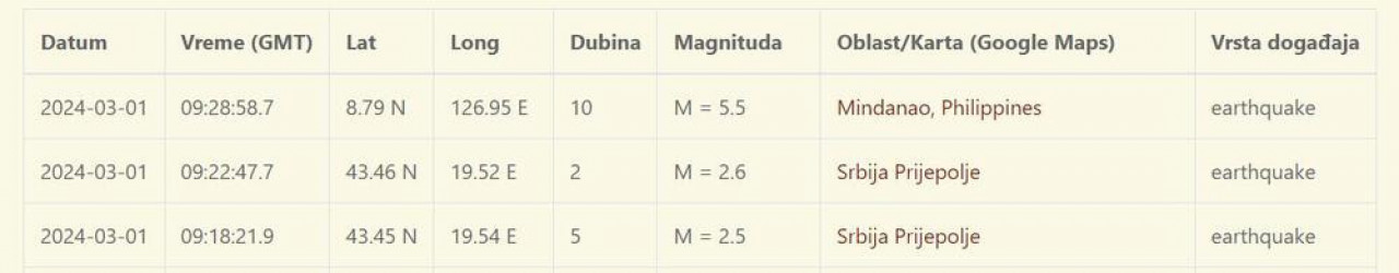 Фото: Принтскрин/Сеизмолошки завод Србије