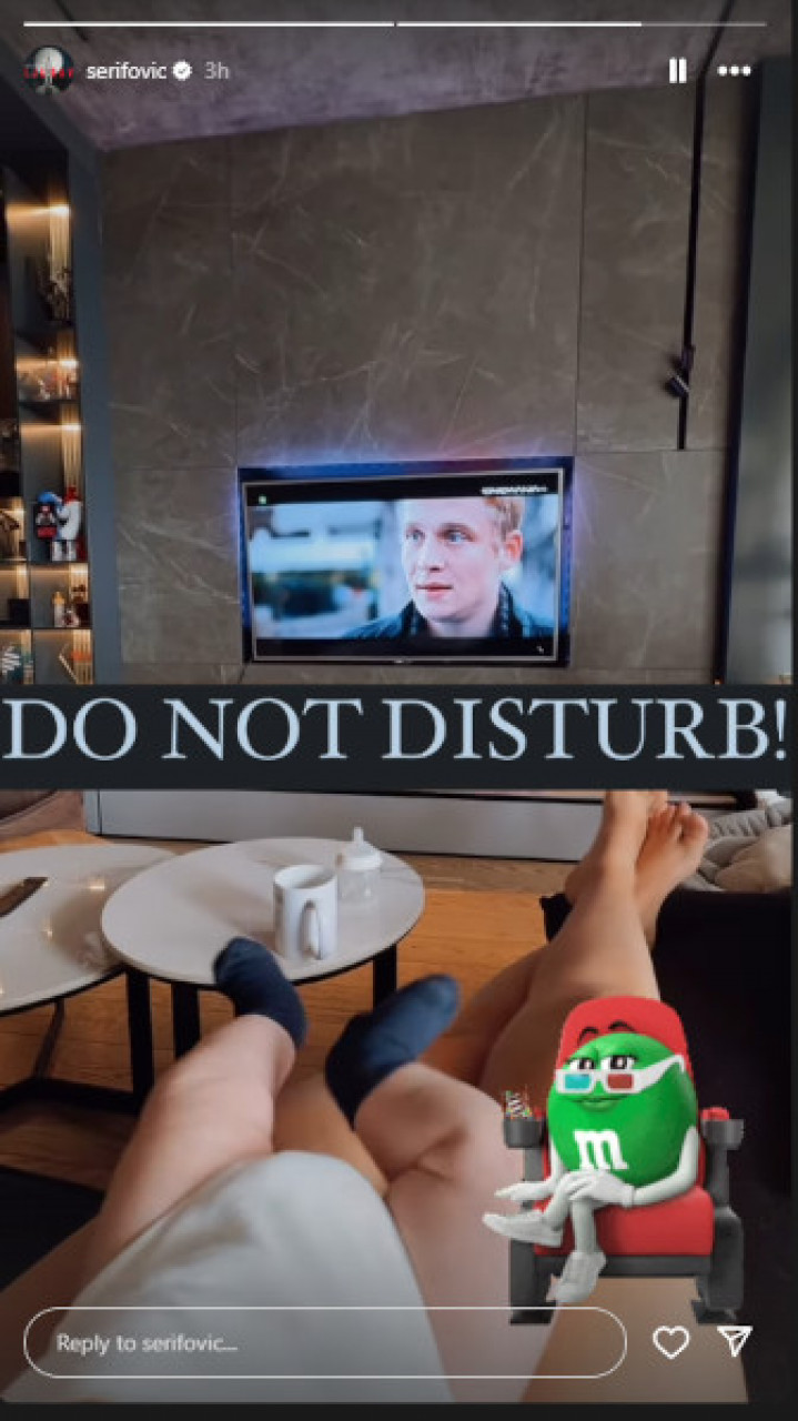 - Не узнемиравајте нас - написала је Марија у опису, додуше на енглеском, али свакоме је јасно шта је имала да поручи будући да се увалила са сином у удобну гарнитуру свог дневног боравка и пустила серије и филмове.