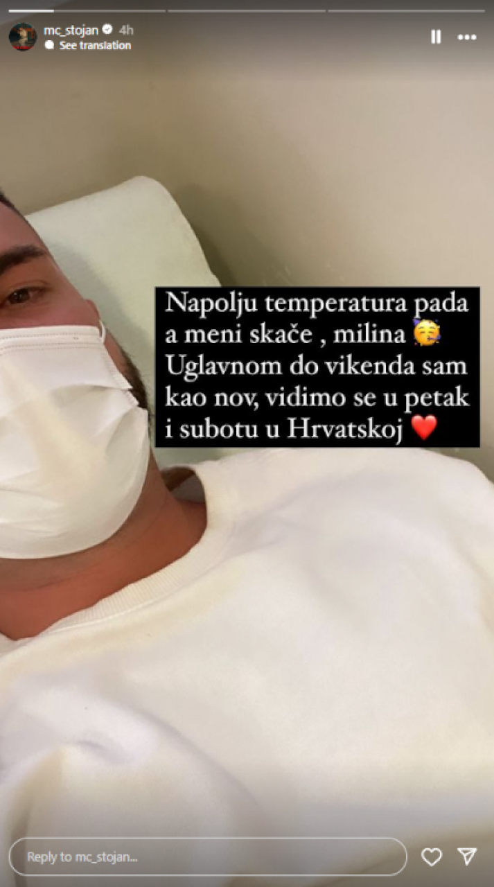 - Напољу температура пада, а мени скаче - милина! Углавном, до викенда сам као нов, видимо се у петак и суботу у Хрватској, написао је Стојан на друштвеној мрежи Инстаграм.