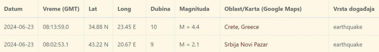 Фото: Сеизмолошки Завод Србије принтскрин