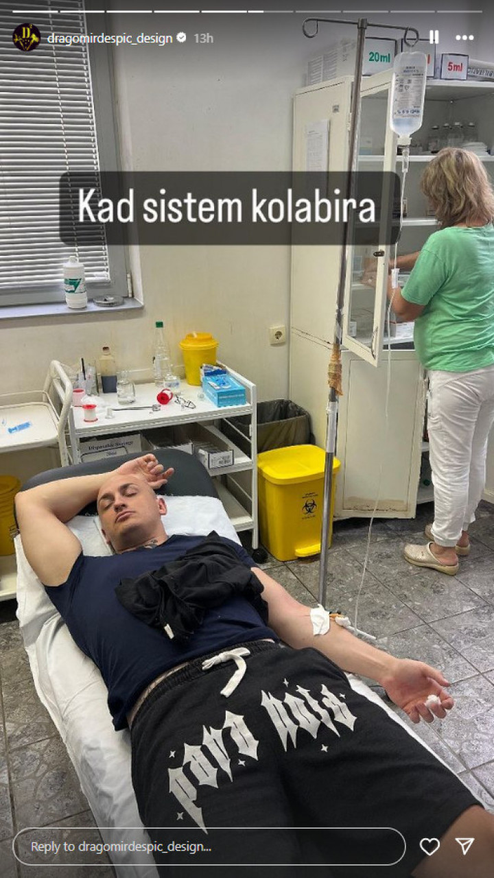 Међутим, након скандалозног наступа, Деспић је изазвао додатну забринутост међу својим фановима објавом фотографије из болничког кревета, где је био прикључен на инфузију.