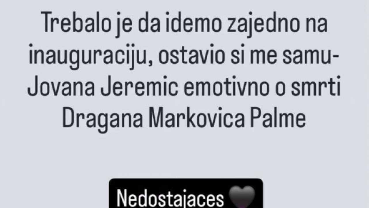 Водитељка Јована Јеремић опростила се од преминулог политичара Драгана Марковића Палме емотивним речима на друштвеним мрежама. Јеремић је на Инстаграму поделила дирљив пост у којем је изразила саучешће његовој породици, истичући његов значај у српској политици и друштву.