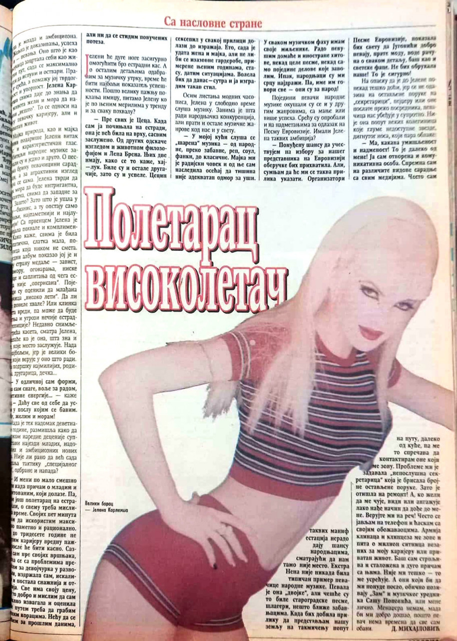 Jedan iz 1997. koji smo "oživeli" iz "Sabora" je naročito zanimljiv. Karleuša je tada imala nepunih 19 leta, tek što je izdala treći album "Veštice, vile", bila je spremna da uđe u "fajt" sa kolegama na estradnoj sceni... I nije bila u svađi sa Svetlanom Cecom Ražnatović. Naprotiv, bila joj je uzor.