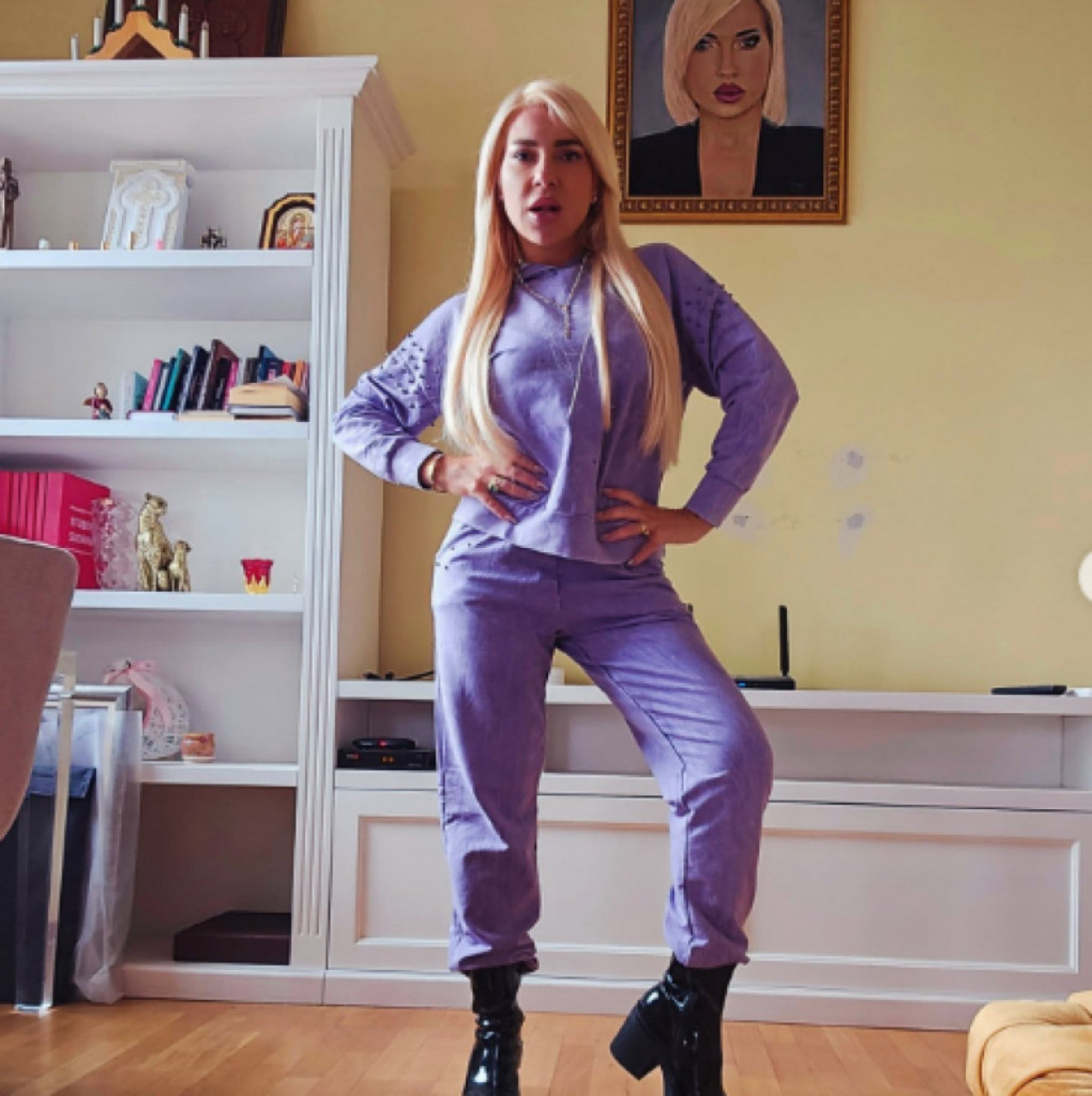 Jovana Jeremić pozirala je u kombinaciji kojom dominira boja lavande, a stajling je "zaokružila" lakovanim čizmama.