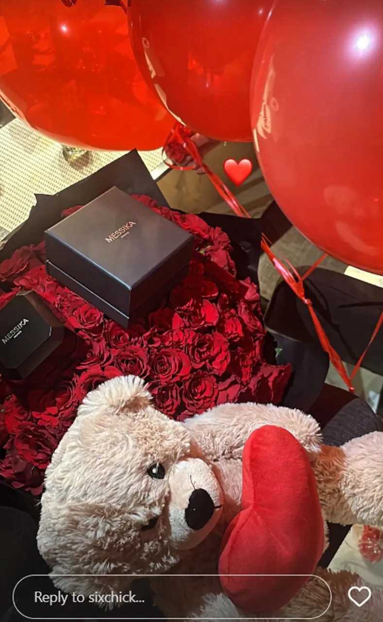 Slavljenica je dobila ogroman buket crvenih ruža, velikog plišanog medu sa srcem, a okolo su bili baloni.