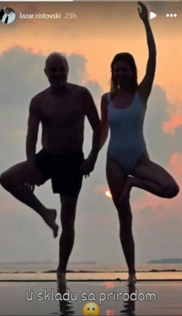 - U skladu sa prirodom - napisao je glumac uz nasmejani emotikon, dok se glumac pridržavao za nogu a ona je podigla ruku uvis.
