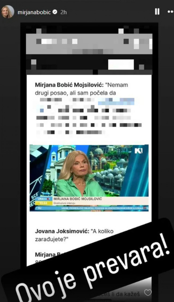 Mirjana se obratila svojim pratiocima i poručila da nikada nije dala nikakav sličan intervju.