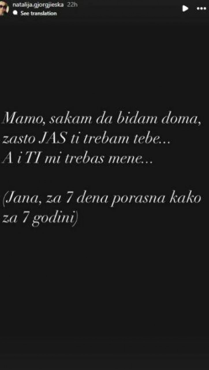 - Mama, hoću da budem kući, jer trebaš mi, a ti trebaš mene... - napisala je ona u objavi a onda dodala: "Jana je porasla 7 godina za 7 dana".