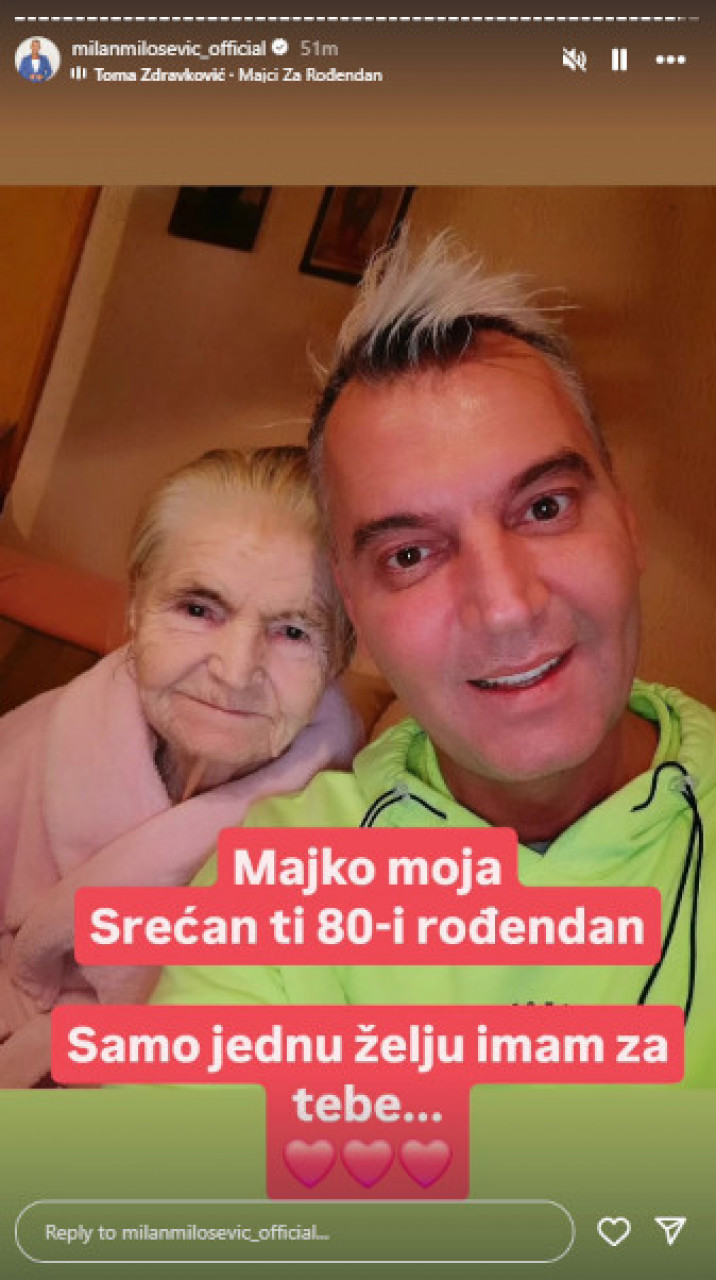 Takođe, Milanovoj mami je na današnji dan rođendan, a napunila je 80 godina.