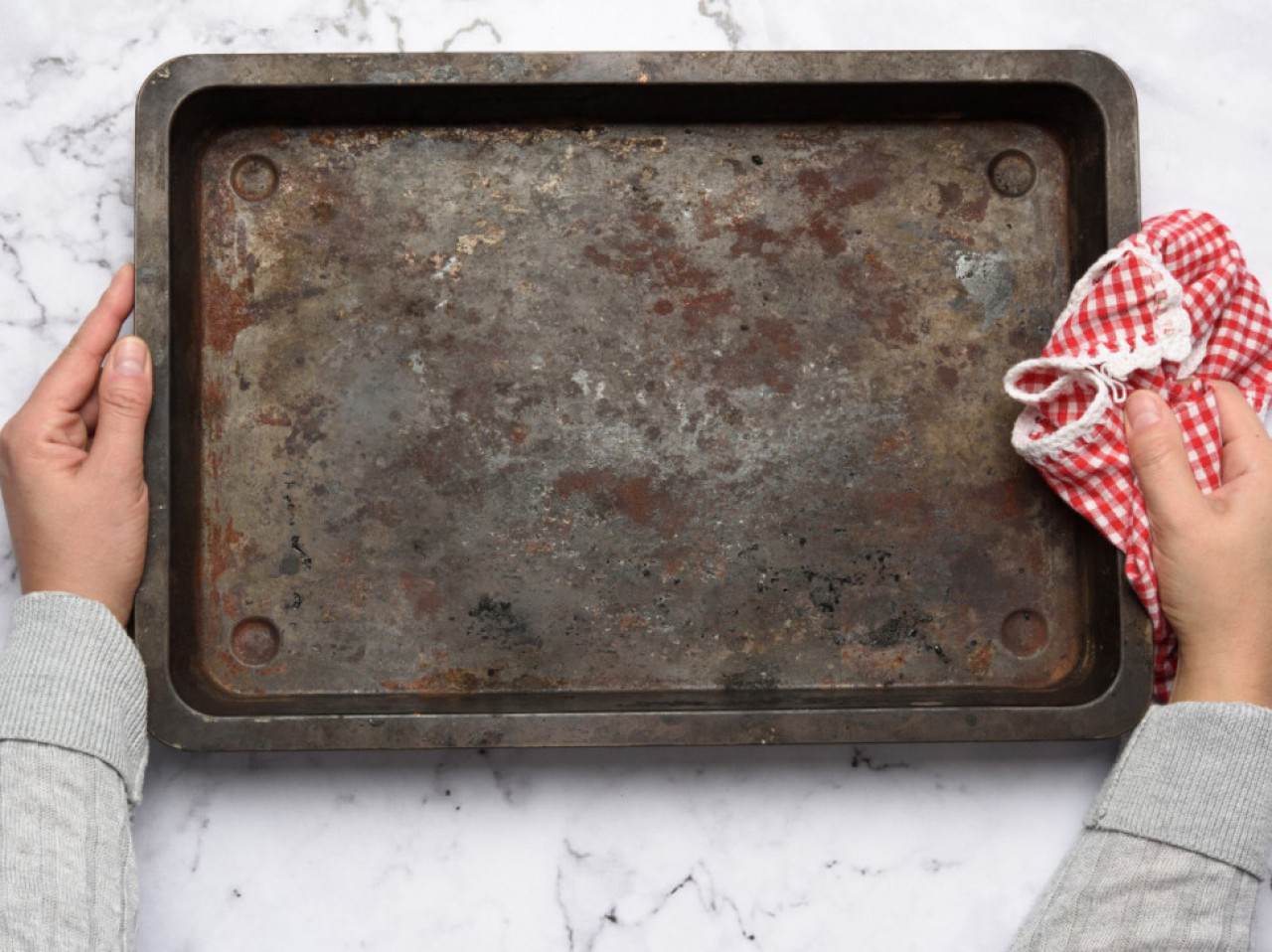 - Za tvrdokorne mrlje, koristite žicu za sudove, ali pazite da ne oštetite pleh