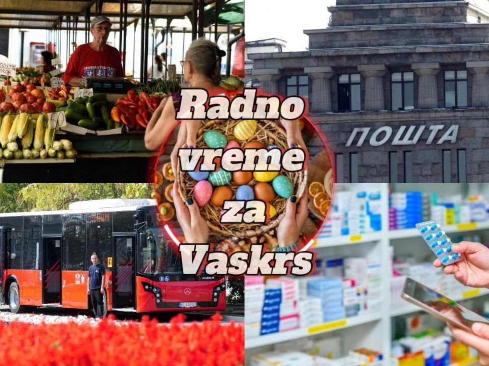 - Pijaca Zeleni venac: u petak, subotu i ponedeljak, 18.,19, i 21. aprila radiće uobičajeno od 6 do 21 čas, dok na Uskrs, 20. aprila neće raditi