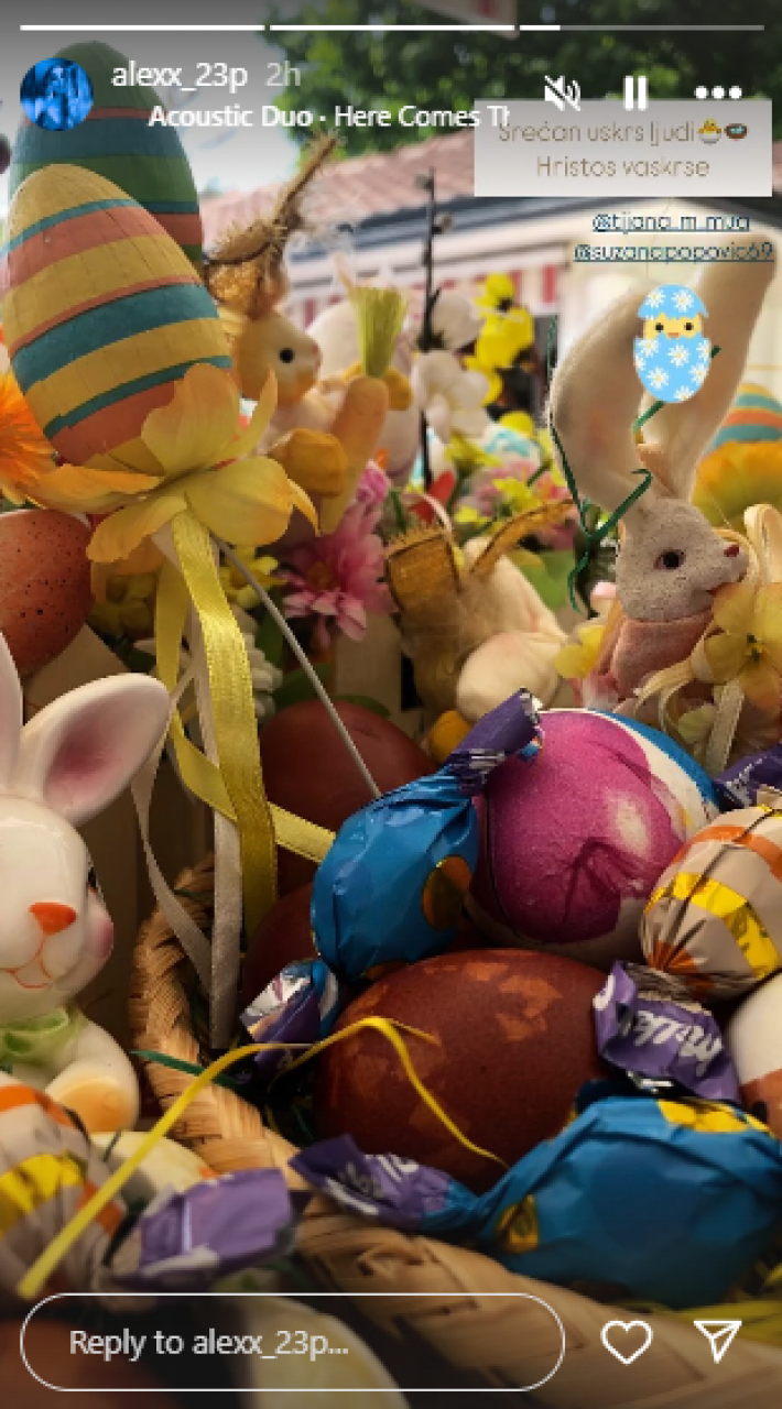 NJegova ćerka Aleksandra Popović oglasila se na Instagramu. Ona je objavila fotografiju iz porodičnog doma, tačnije kako su ofarbali jaja i dekorisali sto, a uz nju je svima čestitala praznik.