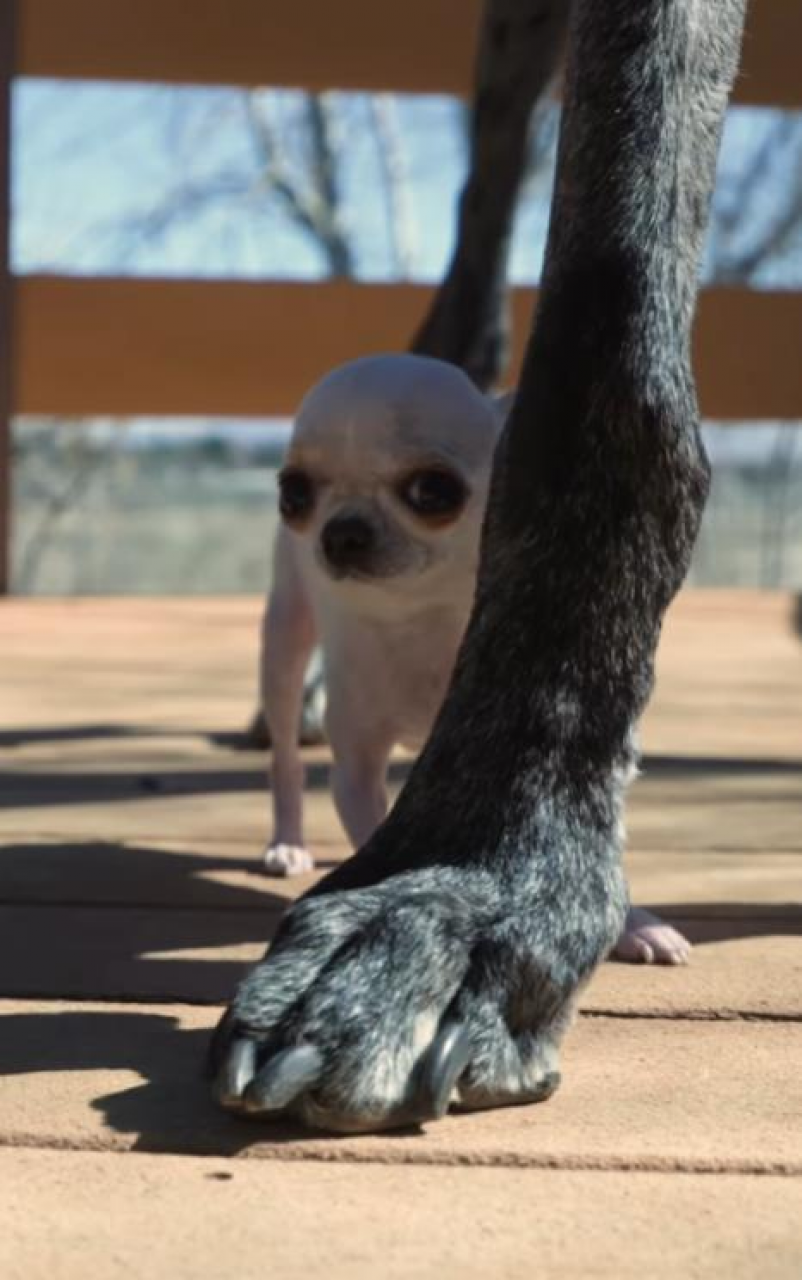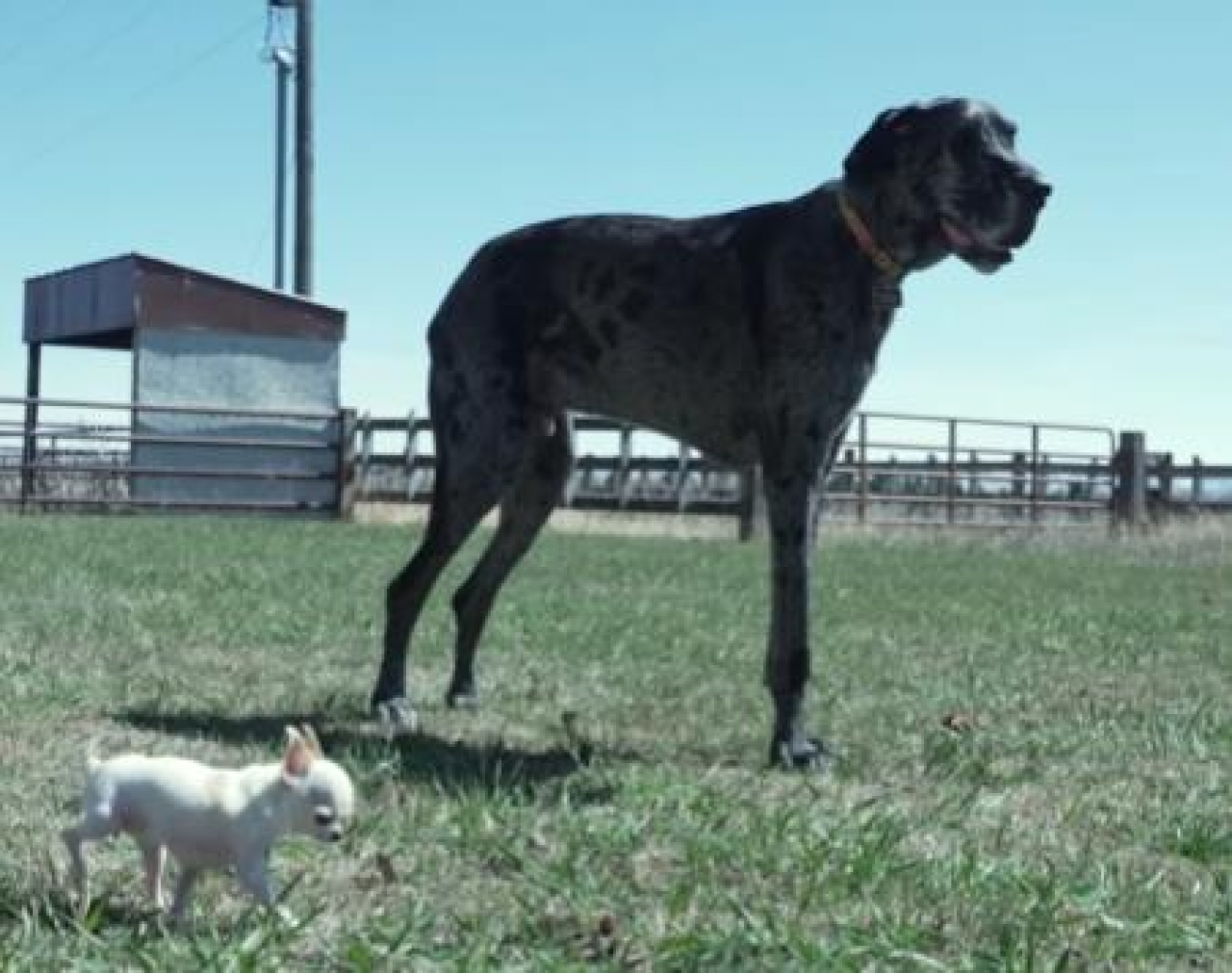 I iako je razlika u visini između Redžija i Perl ogromna – 91,56 cm, otprilike iste visine kao bejzbol palica ili akustična gitara – njihovi vlasnici su otkrili da ova dva psa imaju mnogo više zajedničkog nego što bi se moglo pomisliti.