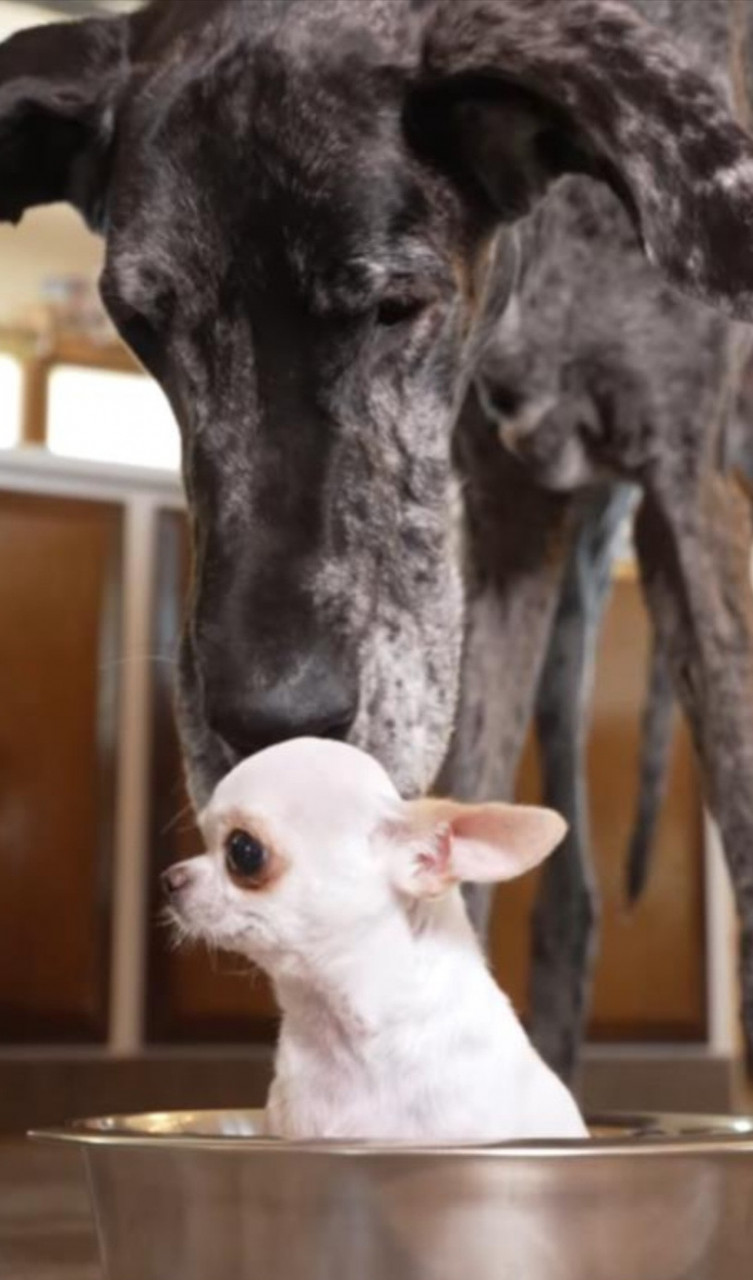 Dva neverovatna i nesvakidašnja psa – najviši pas, Redžinald, i najmanji pas, Perl – sreli su se ranije ovog meseca na jedinstvenom psećem sastanku koji zaista pokazuje kako novi prijatelji dolaze u svim oblicima i veličinama.