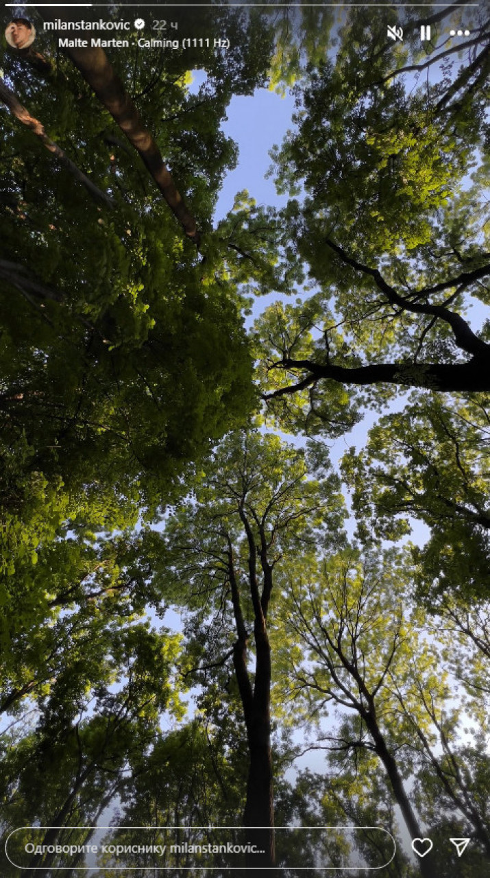 Naime, Milan Stanković se pohvalio na Instagramu da uživa u prirodi. On je slikao drveće tokom sunčanog dana, i pokazao gde uživa izvan grada.