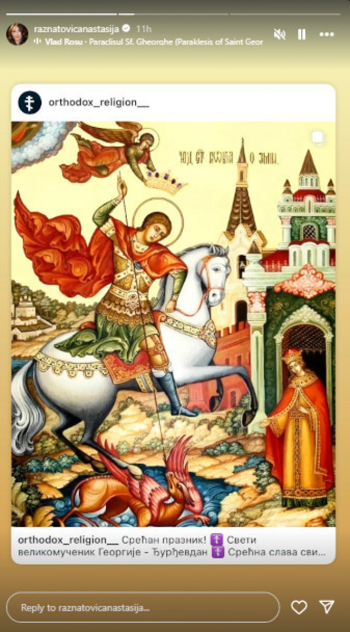 U kući njenog muža i njegovih roditelja, Olivere i Nebojše Gudelja takođe se obeležava Sveti Đorđe. Anastasija se tim povodom oglasila na društvenoj mreži Instagram.
