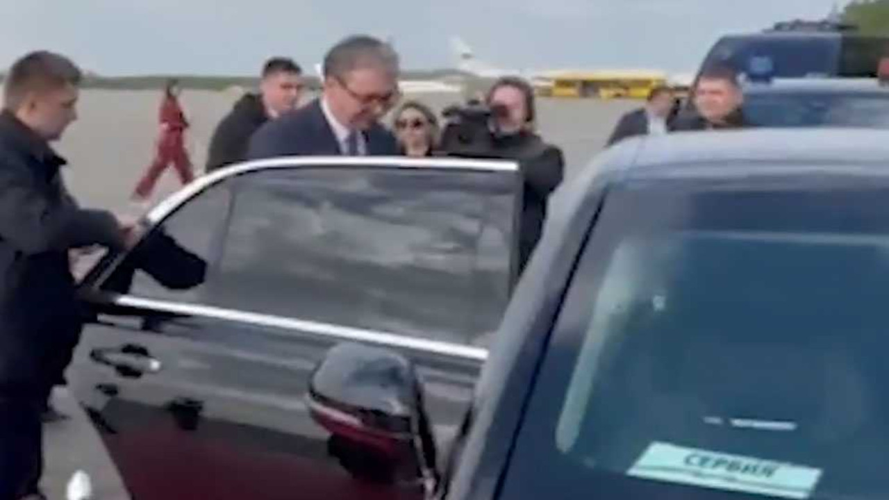 Po predsednika Srbije stigao je vozač sa jednom od limuzina "Aurus" Vladimira Putina. Kako to običaj nalaže kada su posete visokih stranih delegacija u pitanju, popularni "putinmobil" imao je "dodatke" za doček Vučića - zastavicu sa srpskom trobojkom i natpis "Srbija".