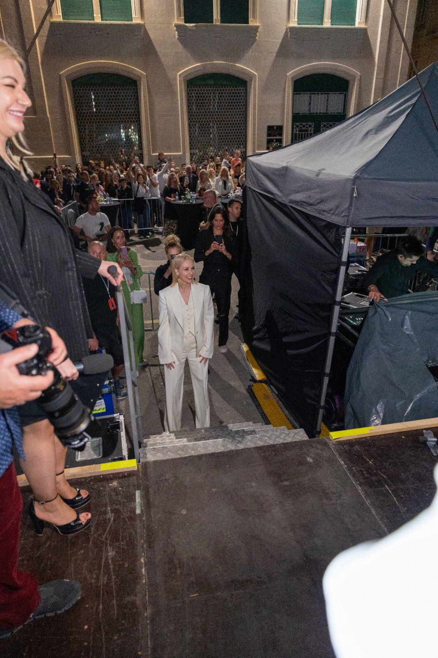 Jelena je blistala i vizuelno – za ovu posebnu priliku odabrala je elegantnu belu modnu kombinaciju koja je savršeno istakla njenu figuru i scenski sjaj.