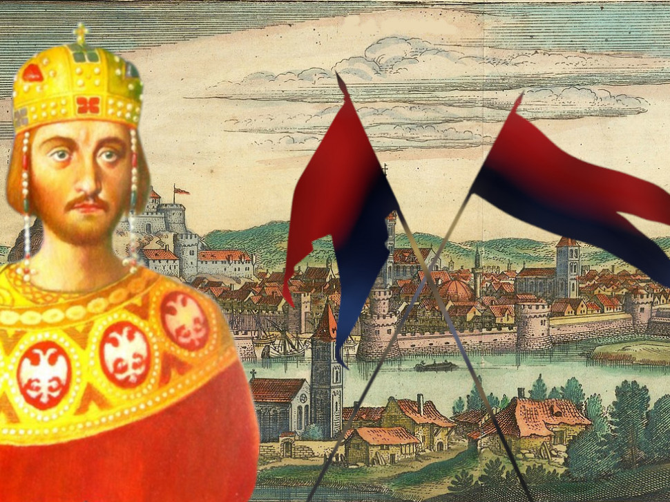 Naime, sin kralja Vladislava, župan Desa, 1281. godine poslao je delegate iz Kotora u Dubrovnik da vrate stvari iz očeve blagajne koja se tamo nalazila , a u spisak je uključena, između ostalih stvari, i “zastava crvene i plave boje” ("vexillum unum de zendato rubeo et blavo" – "zastava od platna crvenog i plavog"). Zendato je čenda, vrsta laganog, svilenkastog platna.
