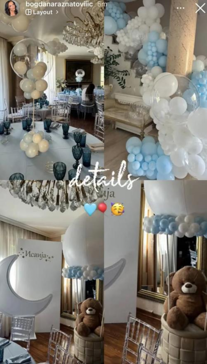 Sve je u plavo-belim tonovima, od stolnjaka do do escajga, dok su svuda po prostoriji postavljeni baloni, što deca obožavaju. Sve je spremno za veliku proslavu, a kako su Ražnatovići dekorisali prostor pogledajte na fotografijama koje je Bogdana objavila na Instagramu.