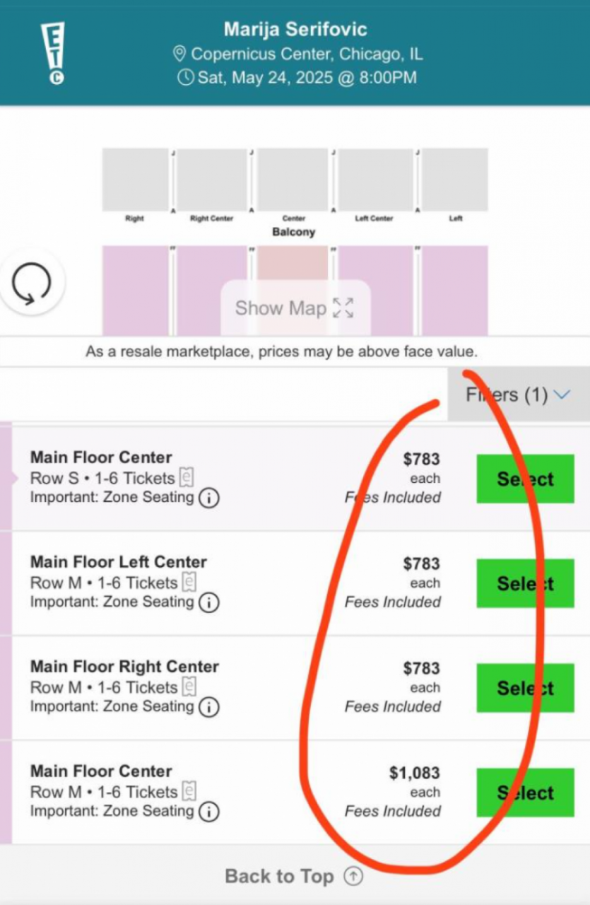 Kao što se može videti na jednom sajtu za prodaju ulaznica, cene za pojedina mesta u dvorani za Šerifovićkin koncert kreću se od 783 do 1.083 dolara. Ova informacija izazvala je salvu komentara na Iksu, pa su tako mnogi pisali da je cena karte preskupa i da su neke od najpoznatijih svetskih zvezda imale jeftinije ulaznice.
