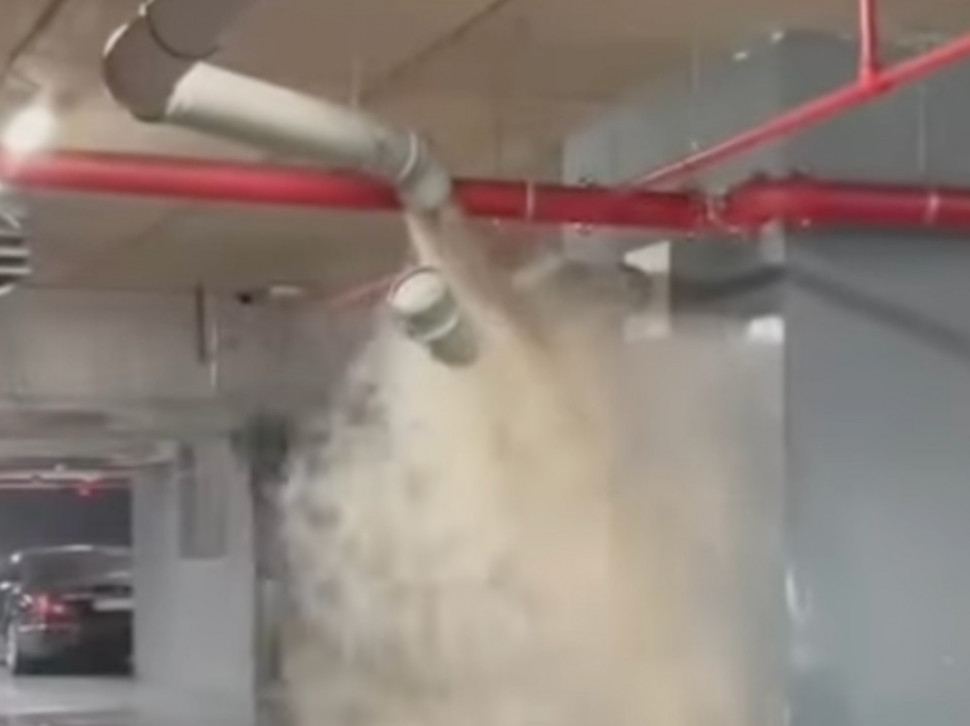 Kako se može videti na snimku na Instagram stranici 192, voda ne prestaje da šiklja iz cevi koja je pukla u garaži tog tržnog centra.